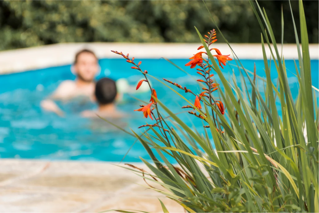 Las casitas cuentan con dos piscinas, zona de columpios para los más peques, un lugar perfecto para relajarse y refrescarse durante los días soleados. Además, disfrutarás de un amplio jardín, ideal para pasar tiempo al aire libre, organizar barbacoas o simplemente relajarte rodeado de naturaleza.
